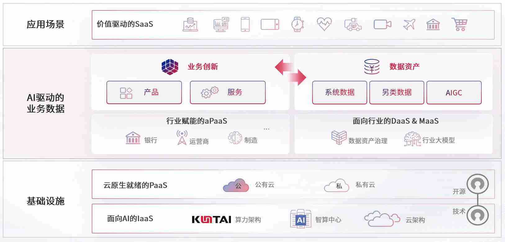 数字时代,,围绕企业数字化转型的关键要素,,,,PA旗舰厅数码开创性的提出数云融合战略和技术体系框架,,,,着力在云原生、、、、数字原生、、、、AI原生和信创产业上架构产品和服务能力,,,为处在不同数字化转型阶段的快消零售、、汽车、、、金融、、、、医疗、、、、政企、、教育、、运营商等行业客户提供泛在的敏捷IT能力和融合的数据驱动能力,,,构建跨界融合创新的数字业务场景和新业务模式,,,助力企业级客户建立面向未来的核心能力和竞争优势,,,全面推动社会的数字化、、智能化转型升级。。。。